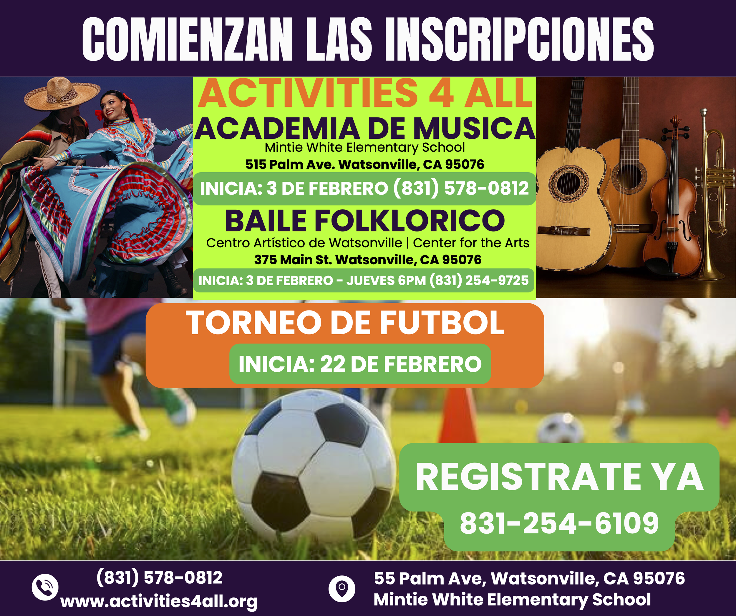 At Activities 4 All, we proudly foster a welcoming, inclusive environment for everyone no matter their age, income, education, race, religion, or sexual orientation. Rooted in the heart of Watsonville, we serve a vibrant community, many of whom come from low-income, migrant, and Spanish-speaking households.